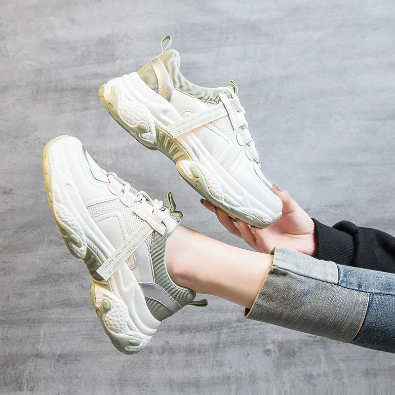 Women Platform Chunky Sneakers 2020 Spring Korean Fashion Lace Up Casual Shoes Woman Breathable Old Dad Shoes Vulcanized Shoes