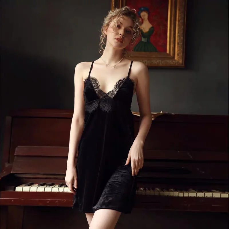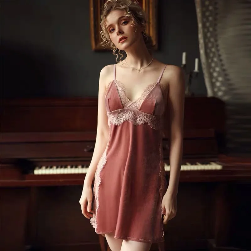 Related Product for Spring Summer Women Sexy Lingerie Lace Nightdress Gold Velvet Feminine Underwear Skinny Mini Women