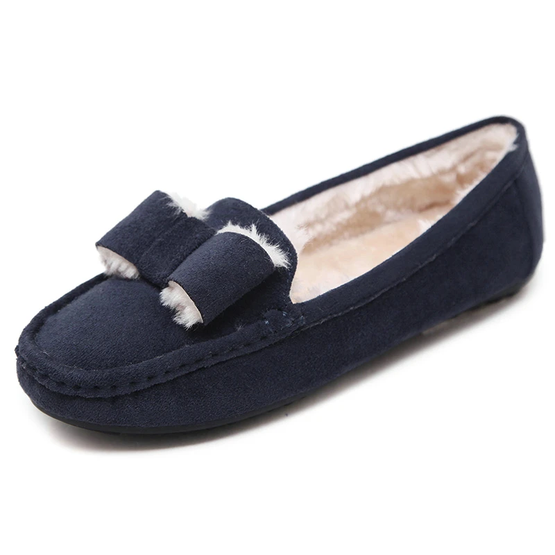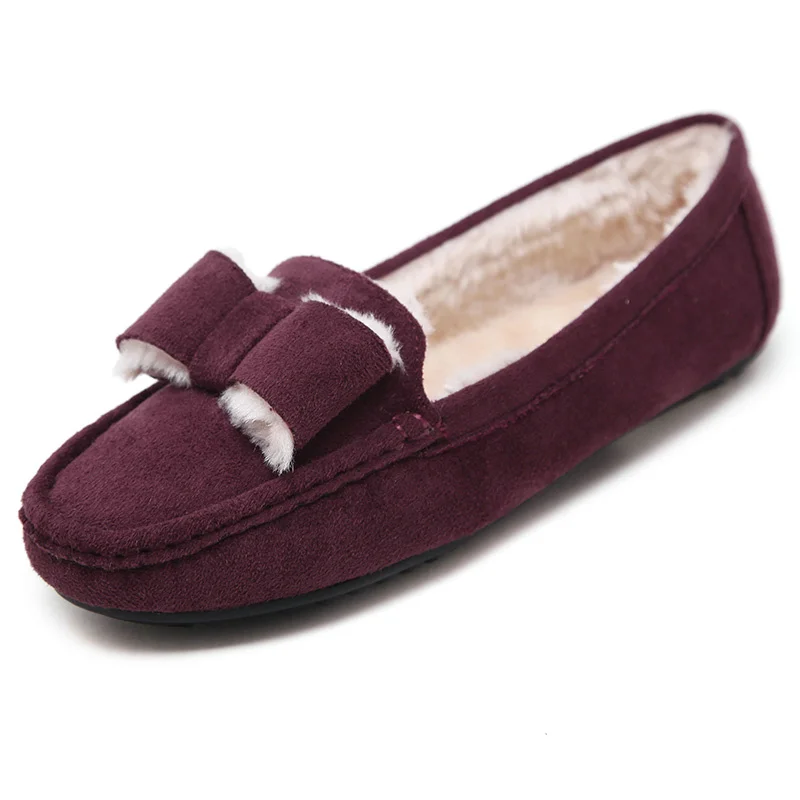 .image of UMMEWALO Flat Shoes Women Winter Warm Loafer Shoes Woman Flock Short Plush Cotton Shoes Mother Loaf