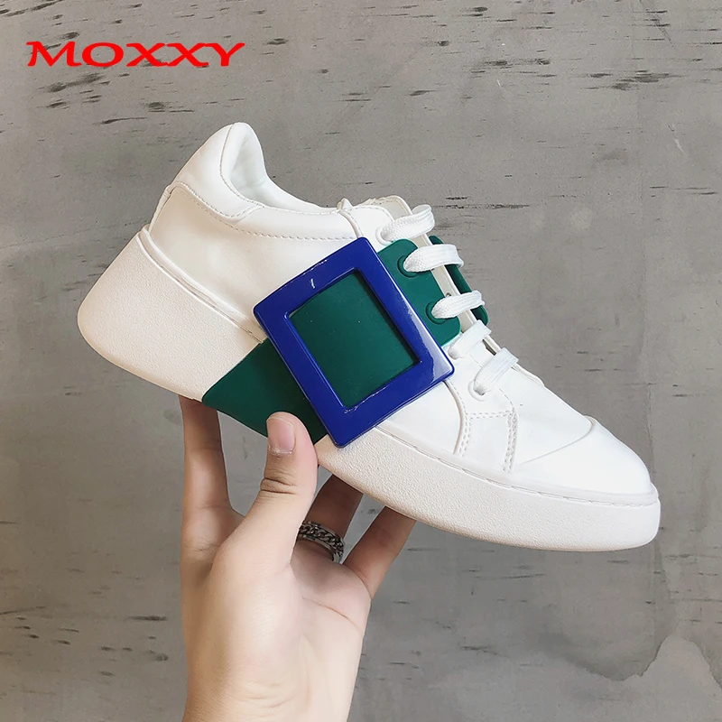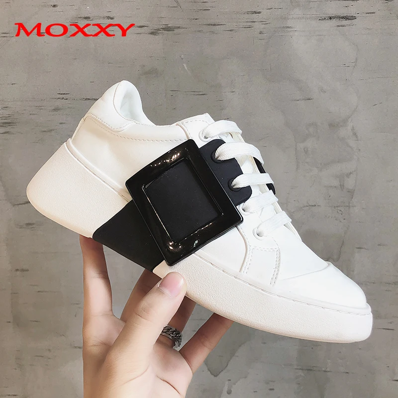Special Price for 2020 New Designer White Sneakers Women Shoes Buckle Lace Up PU Leather Fashion Luxury Sneakers Casu