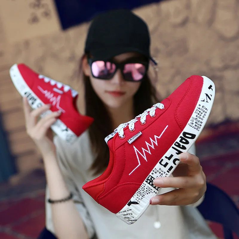 Buy 2019 Spring Women Shoes Black Sneakers Women Lace-up Print Casual Shoes Low Top Graffiti Canvas Sho Right Here and Right Now, Because before price is changed you will just pay for US $46.05, not in Reguler Price at US $46.05. Yap! This is I mean you will Save 0%