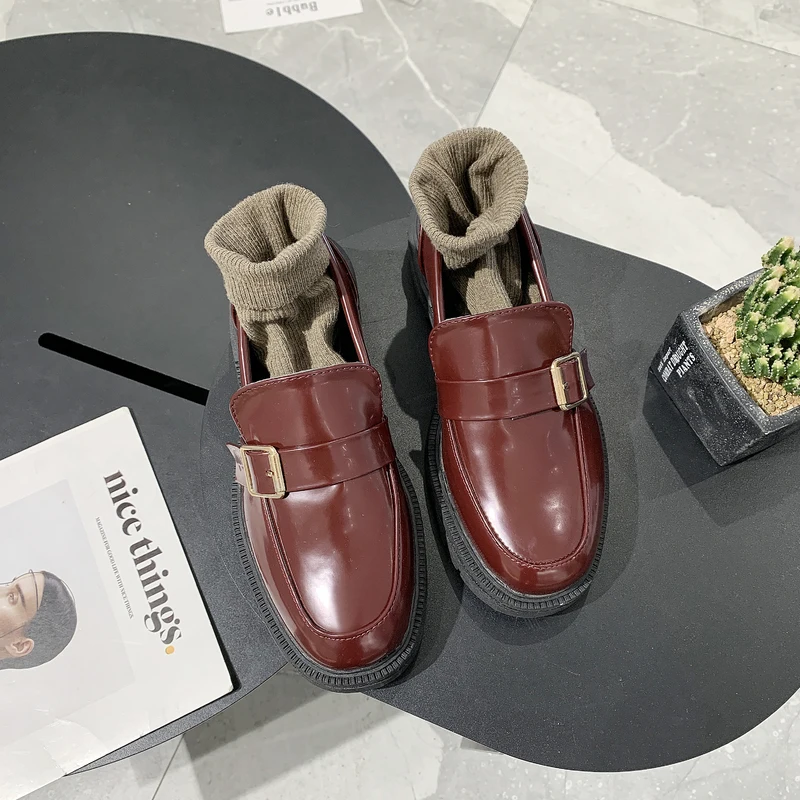 .image of 2020 Spring Autumn Flat Shoes Women Small Leather Shoes Women Retro Flat Sole Big Head Baby Single