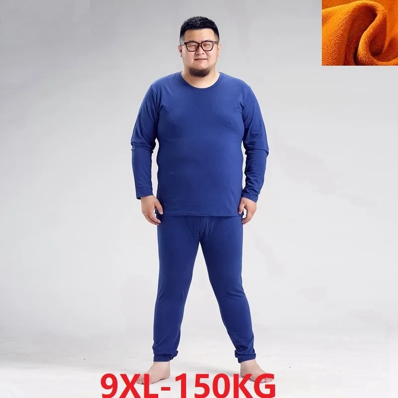 Large Size Men Warm Cotton Underwear 6XL 7XL 8XL Winter Thermal Leggings Sets Tops And Pants Oversize Elasticity Stretch Bottoms