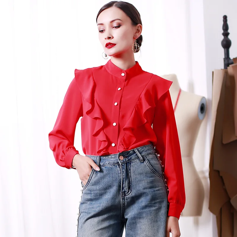 Best Price for 19 New Style Autumn & Winter plus Velvet Shirt Women Long Sleeve Chiffon Shirt Underwear Warm Shirt