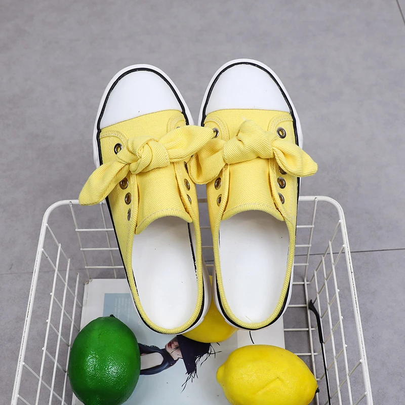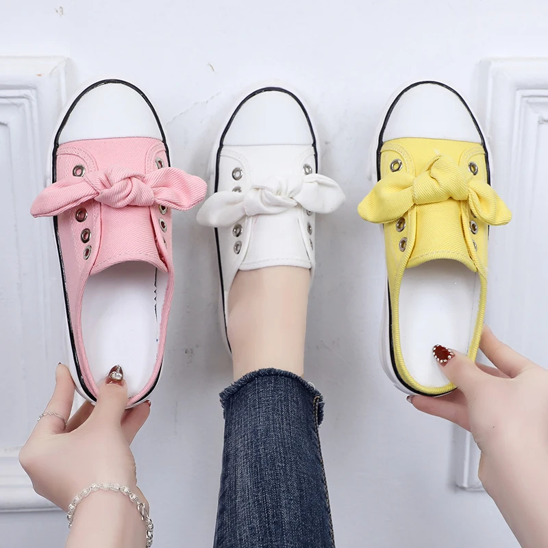 .image of 2020 High Quality Womans Sneakers Fashion New Half Slippers Flat Shoe Canvas Shoes Women Casual Bre