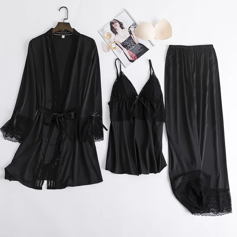 0 Response to "Special Offer for Fiklyc underwear 2020 spring women's 3 pieces satin & lace patchwork pajamas sets with long sleeve "