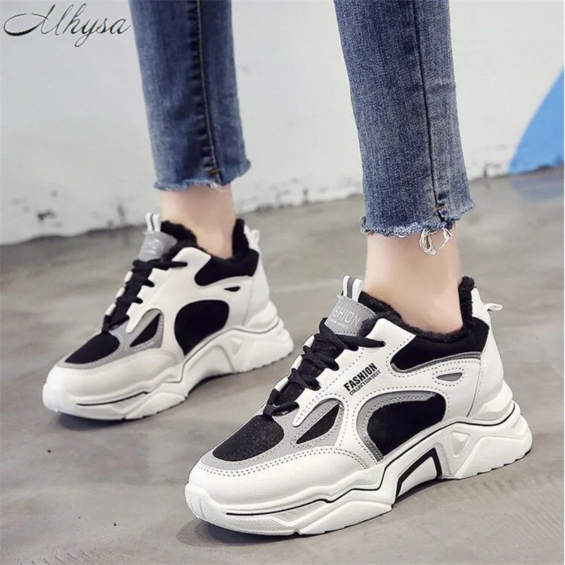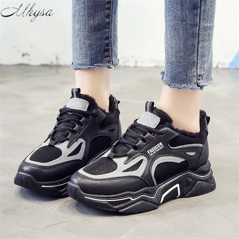 .image of Mhysa 2020 Winter Shoes Women Daddy Shoes Sneakers Female Thick bottom Warm and velvet Sneakers Ref