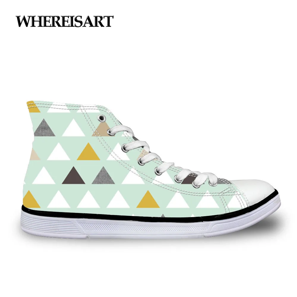 Good Price of WHEREISART Mod Mint Triangles Women Vulcanize Shoes Spring Girls Female Casual High top Canvas Shoe